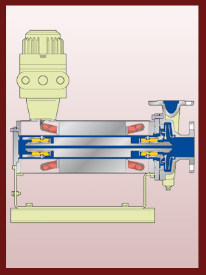 The pump and motor are connected by an adapter plate or a FB housing. A portion of the liquid being handled is taken from the impeller outlet part of the pump chamber into the rotor chamber for the purposes of cooling the motor and lubricating the bearings and returned to the pump chamber through the hollow shaft. A jacket may be fitted to the outer wall of the stator assembly depending on the temperature and other characteristics of the liquid being pumped.
